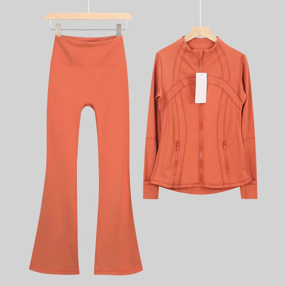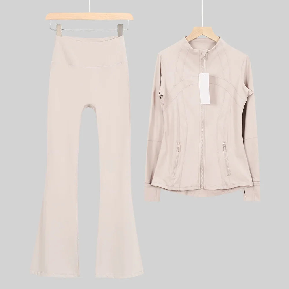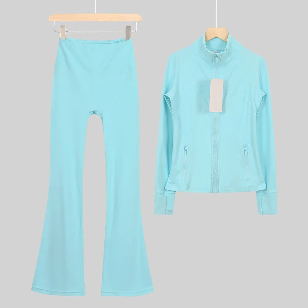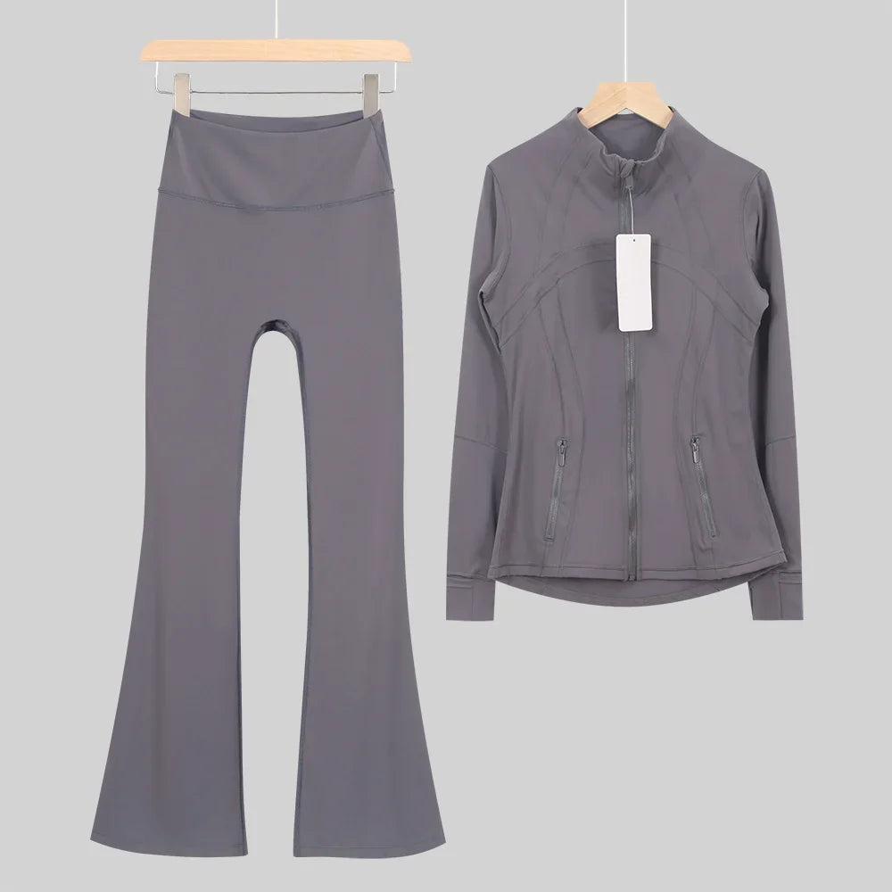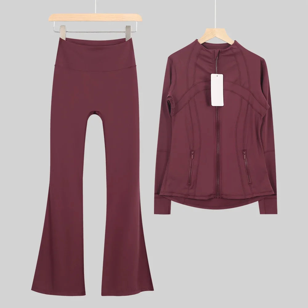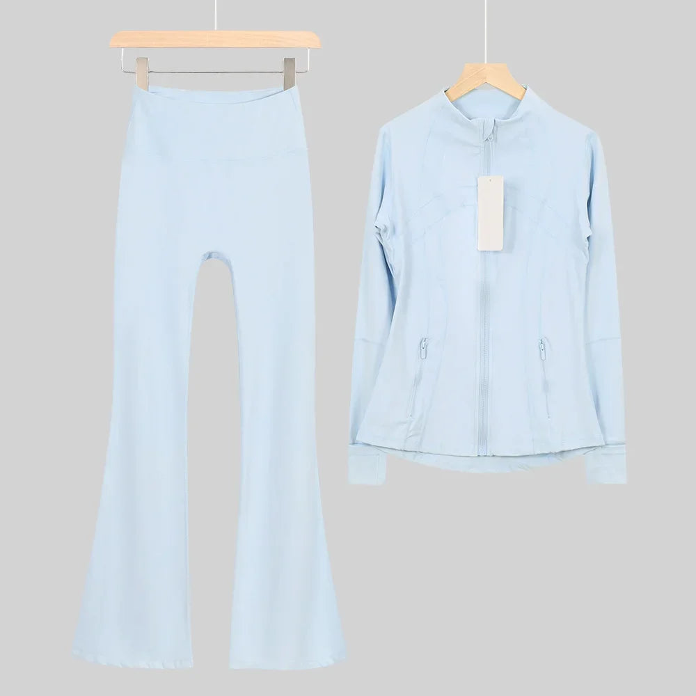 طقم متكامل يجمع بين الأداء الرياضي، الراحة، والأناقة اليومية، مناسب لكل نشاطاتك الرياضية والمشاوير اليومية( image colorimage col / 10 ) - https://glow-fitstore.com/products/woman-with-long-sleeves-yoga-outfit-two-pcs-suits-long-pants-coat-elasticity-running-bell-bottoms-jacket-suit-gym-set-women?variant=43680877150317