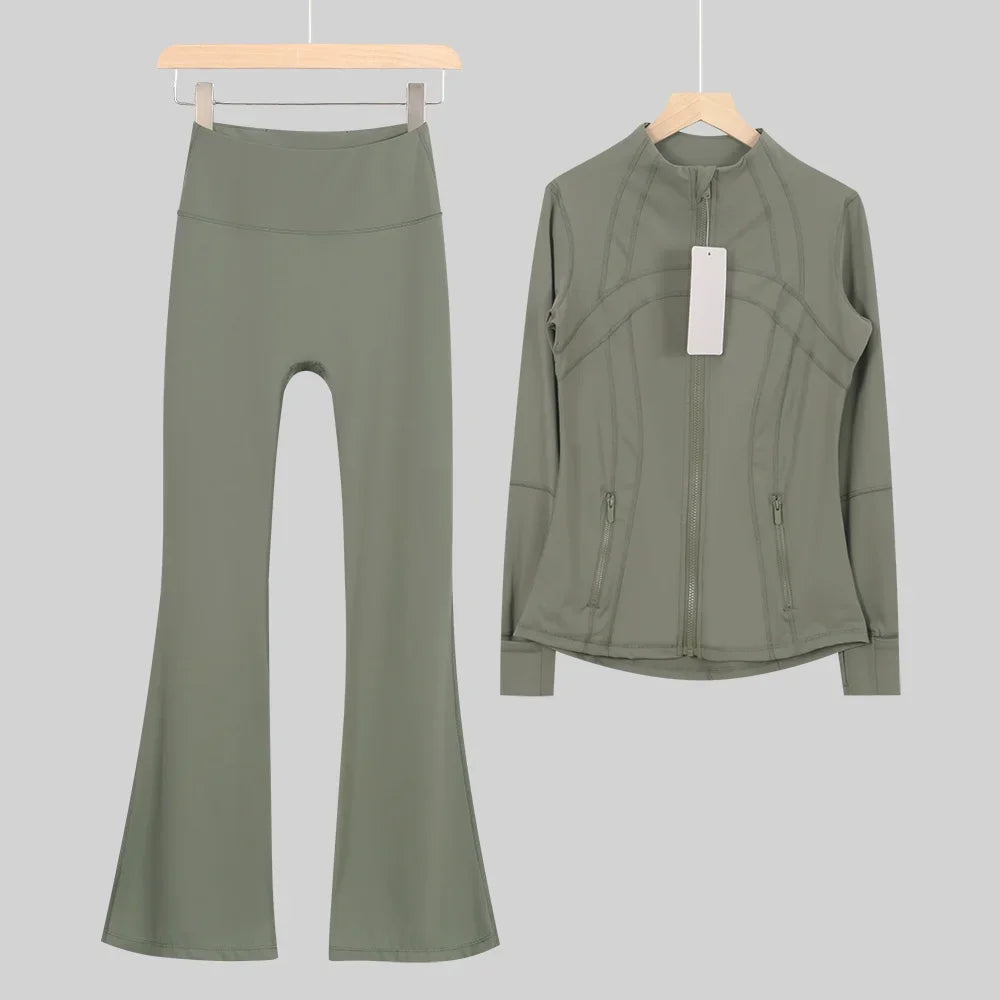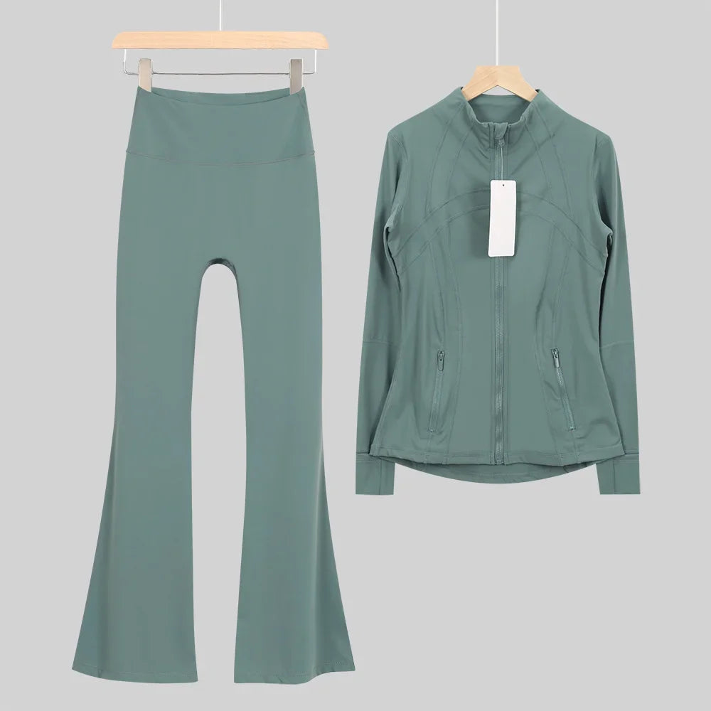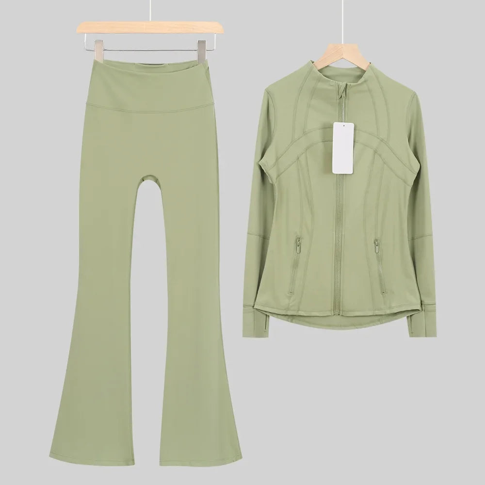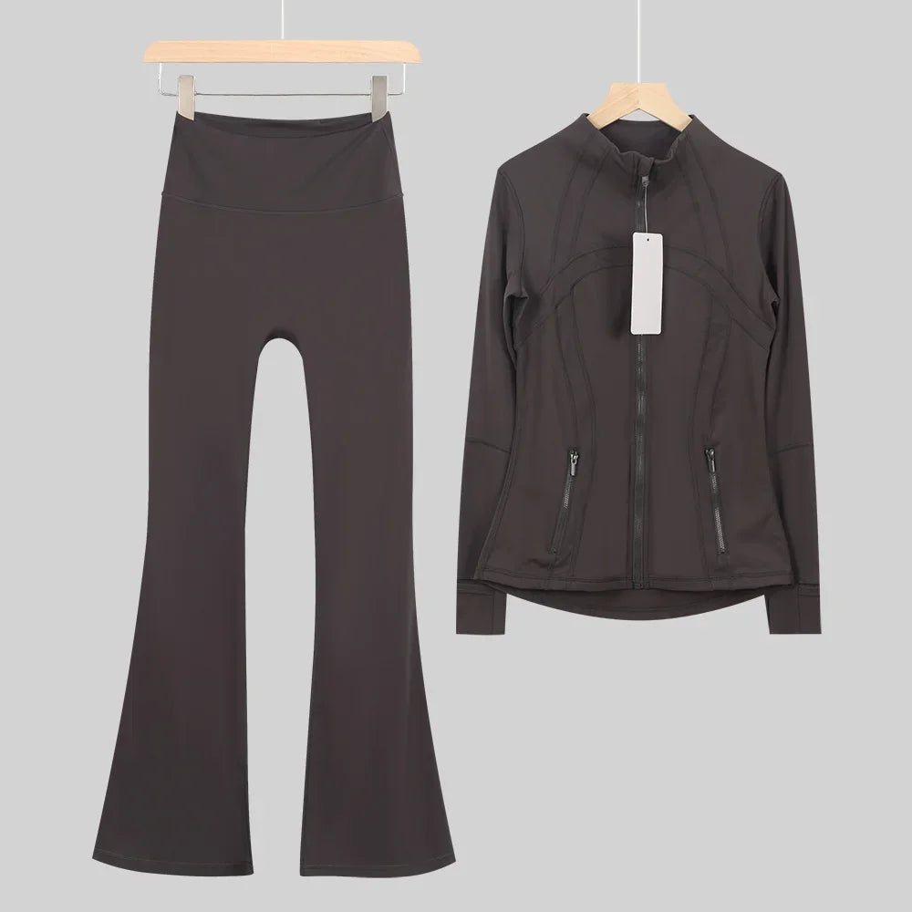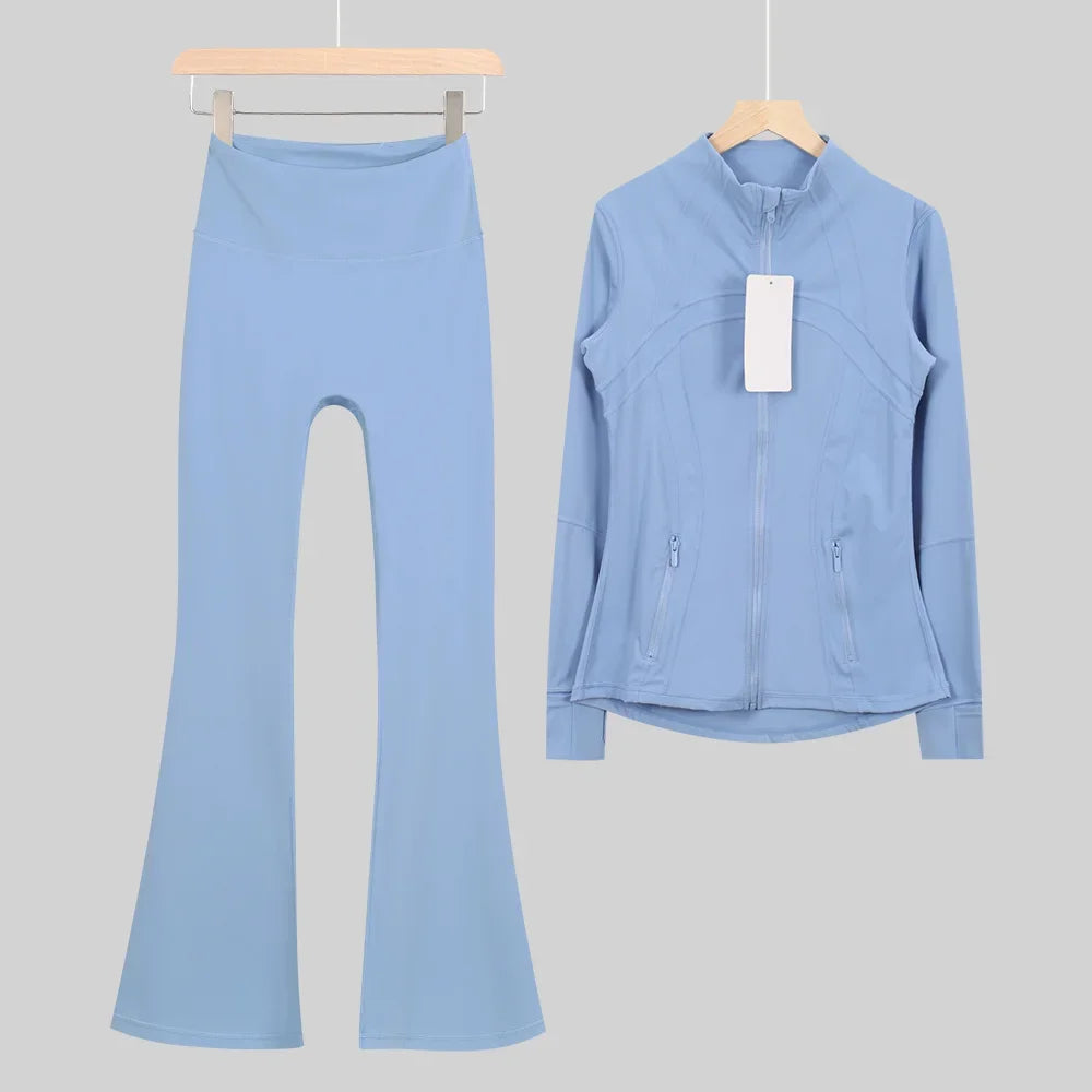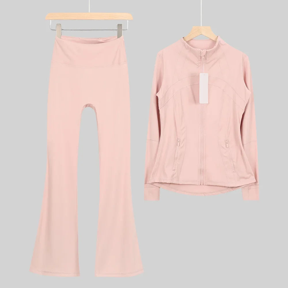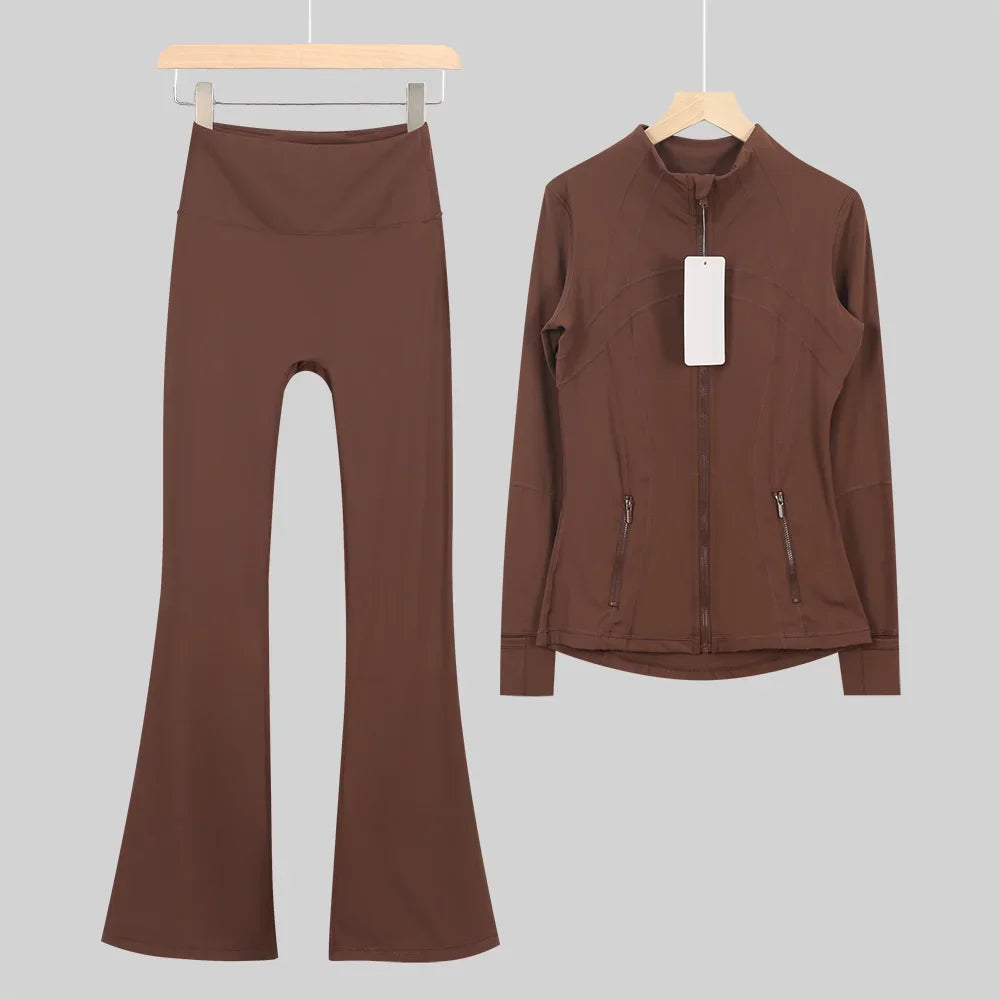 طقم متكامل يجمع بين الأداء الرياضي، الراحة، والأناقة اليومية، مناسب لكل نشاطاتك الرياضية والمشاوير اليومية( image colorimage col / 10 ) - https://glow-fitstore.com/products/woman-with-long-sleeves-yoga-outfit-two-pcs-suits-long-pants-coat-elasticity-running-bell-bottoms-jacket-suit-gym-set-women?variant=43680877150317