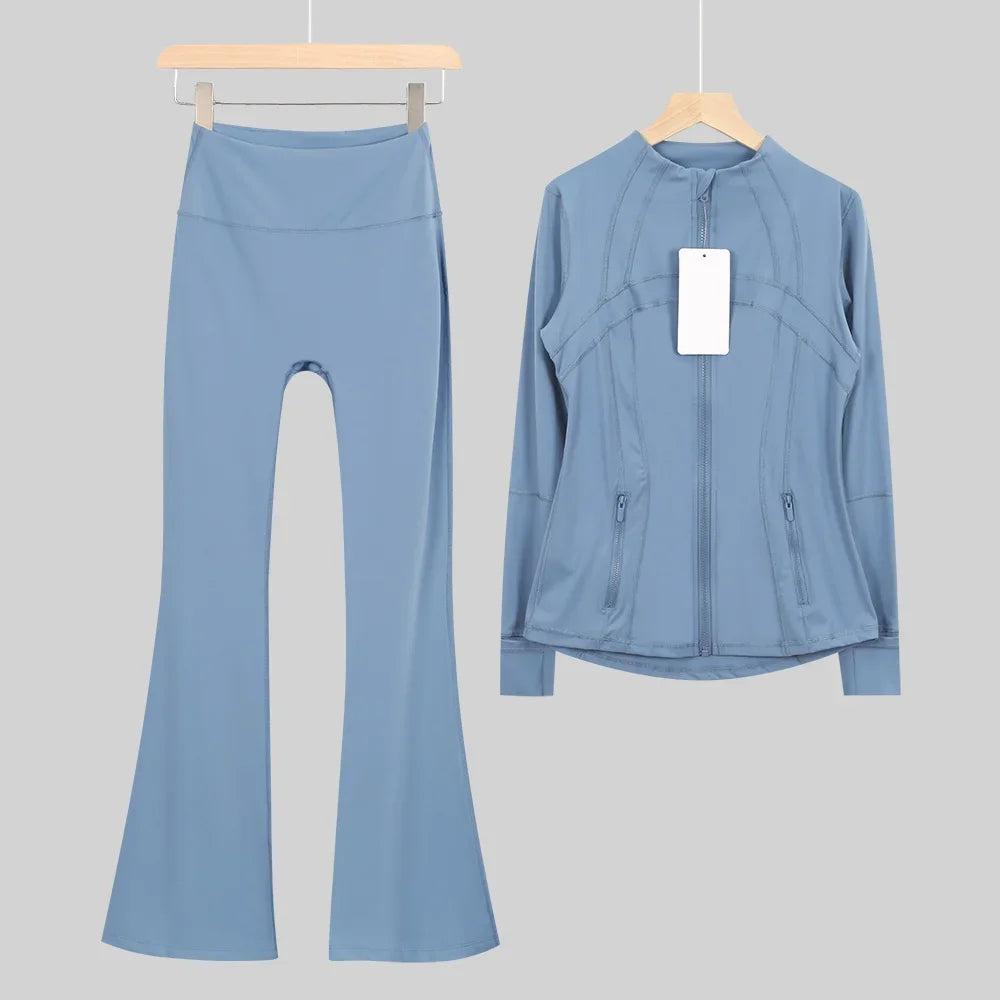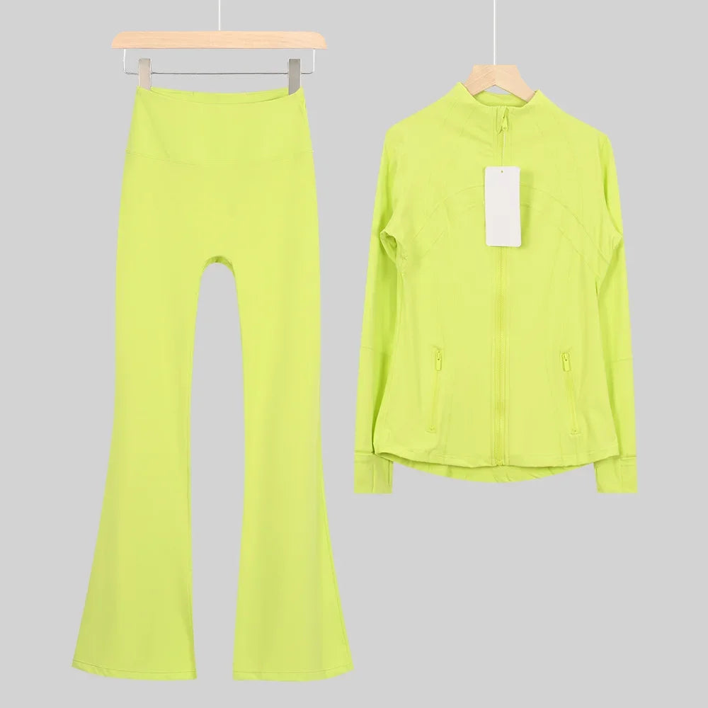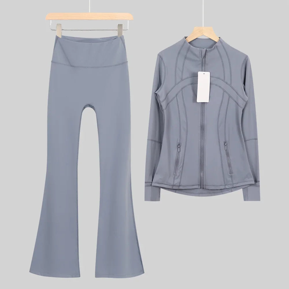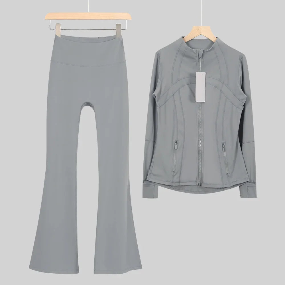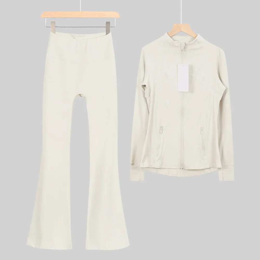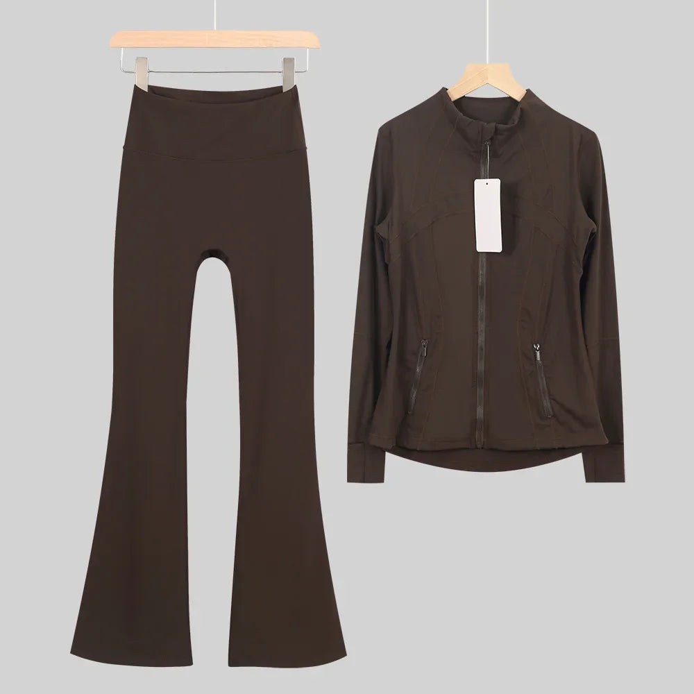 طقم متكامل يجمع بين الأداء الرياضي، الراحة، والأناقة اليومية، مناسب لكل نشاطاتك الرياضية والمشاوير اليومية( image colorimage col / 10 ) - https://glow-fitstore.com/products/woman-with-long-sleeves-yoga-outfit-two-pcs-suits-long-pants-coat-elasticity-running-bell-bottoms-jacket-suit-gym-set-women?variant=43680877150317