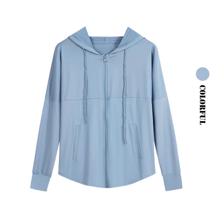 מעיל קל משקל מושלם לאימונים ולפעילויות יומיומיות, מעוצב עם הגנה גבוהה מפני השמש UPF 50+ כך שתוכלו לנוע בביטחון בכל מזג אוויר. הוא כולל רוכסן מלא וקפוצ'ון לנוחות, והבד הקליל והמתייבש במהירות מתאים לריצה, טיולים רגליים, יוגה ואפילו טיולים בסתיו.