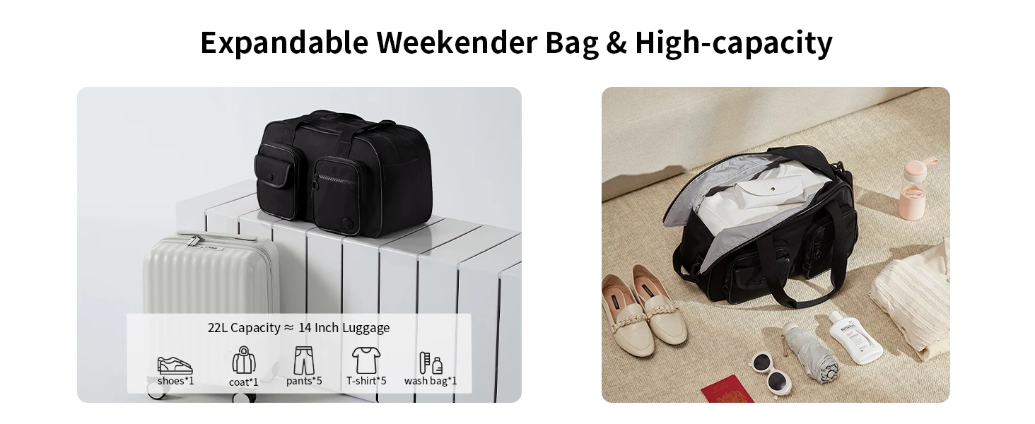 𝐒𝐩𝐚𝐜𝐢𝐨𝐮𝐬 𝐂𝐚 𝐩𝐚𝐜𝐢𝐭𝐲 & 𝐎𝐫𝐠 𝐚𝐧𝐢𝐳𝐚𝐭𝐢𝐨𝐧𝐚 𝐥 𝐄𝐱𝐜𝐞𝐥𝐥𝐞𝐧𝐜 𝐞𝐞: Expandable from 26L to 36L, the Aji Travel Canvas Bag offers plenty of storage space for your travel essentials. Designed with 11 functional pockets and compartments to ensure optimal organisation of items such as your passport, phone, wallet and toiletries, this travel bag's unique large opening makes packing and organising a breeze.