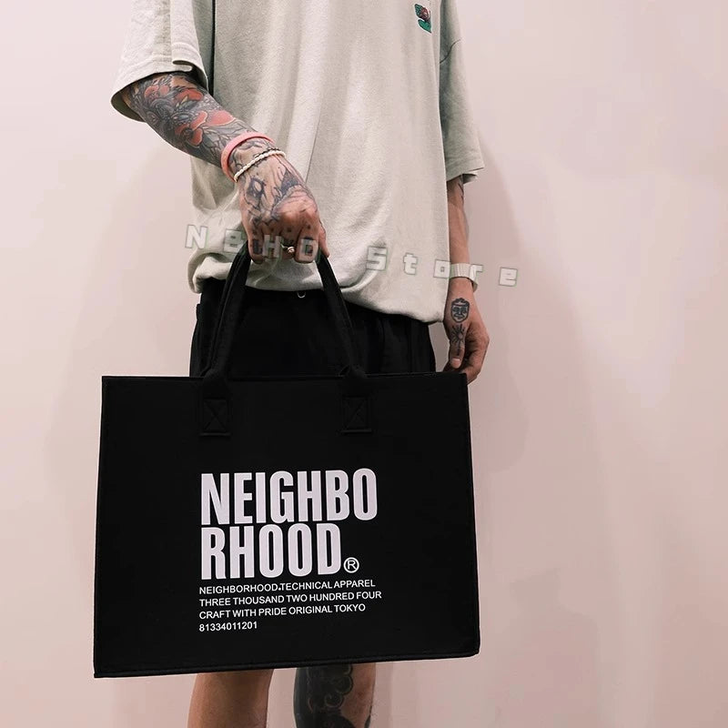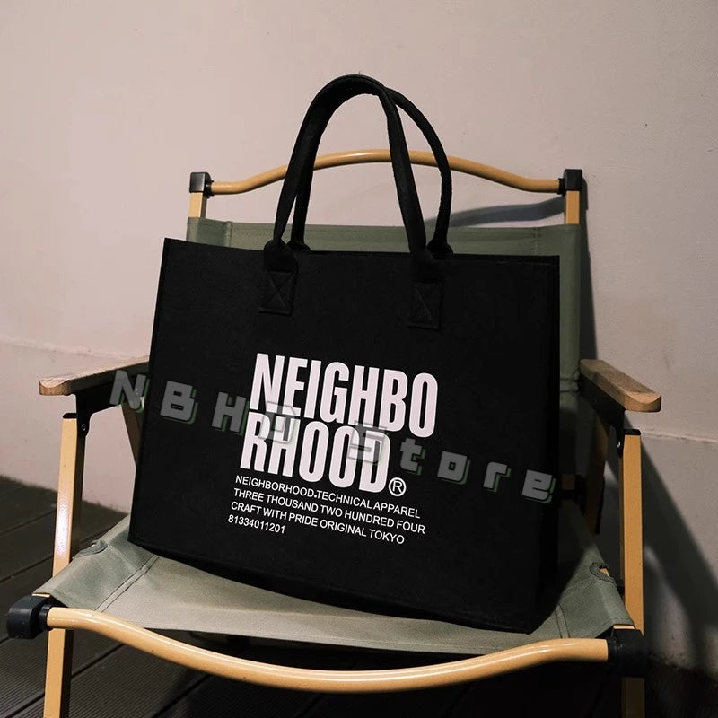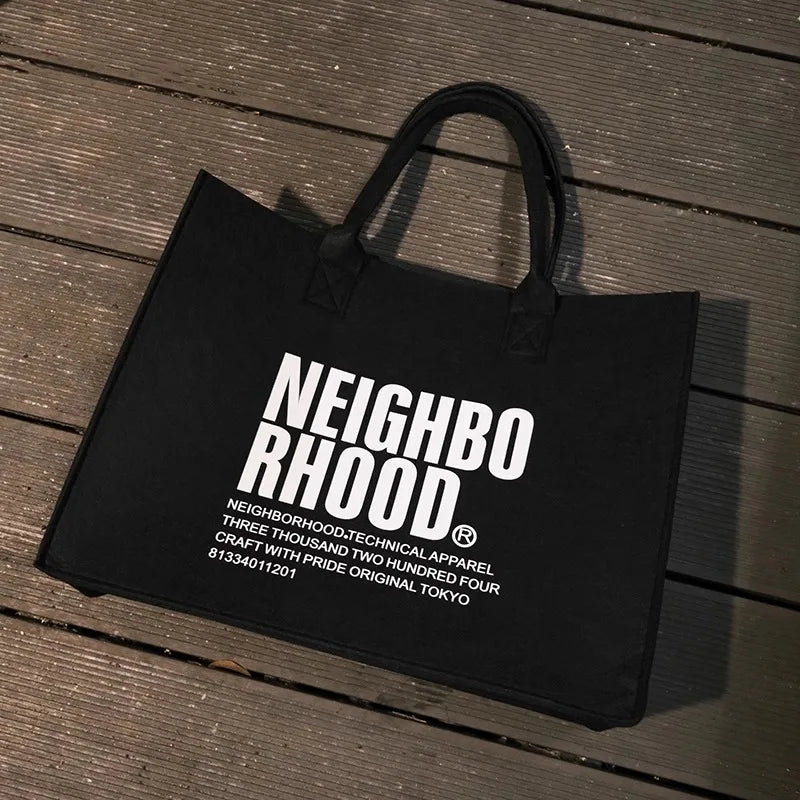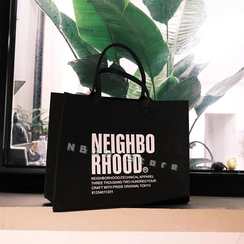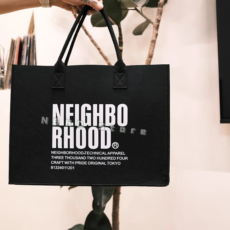 Neighborhood NBHD Black Felt Tote Bag Large Hand Carry Crossbody Bag Gift Bag Souvenir Gift