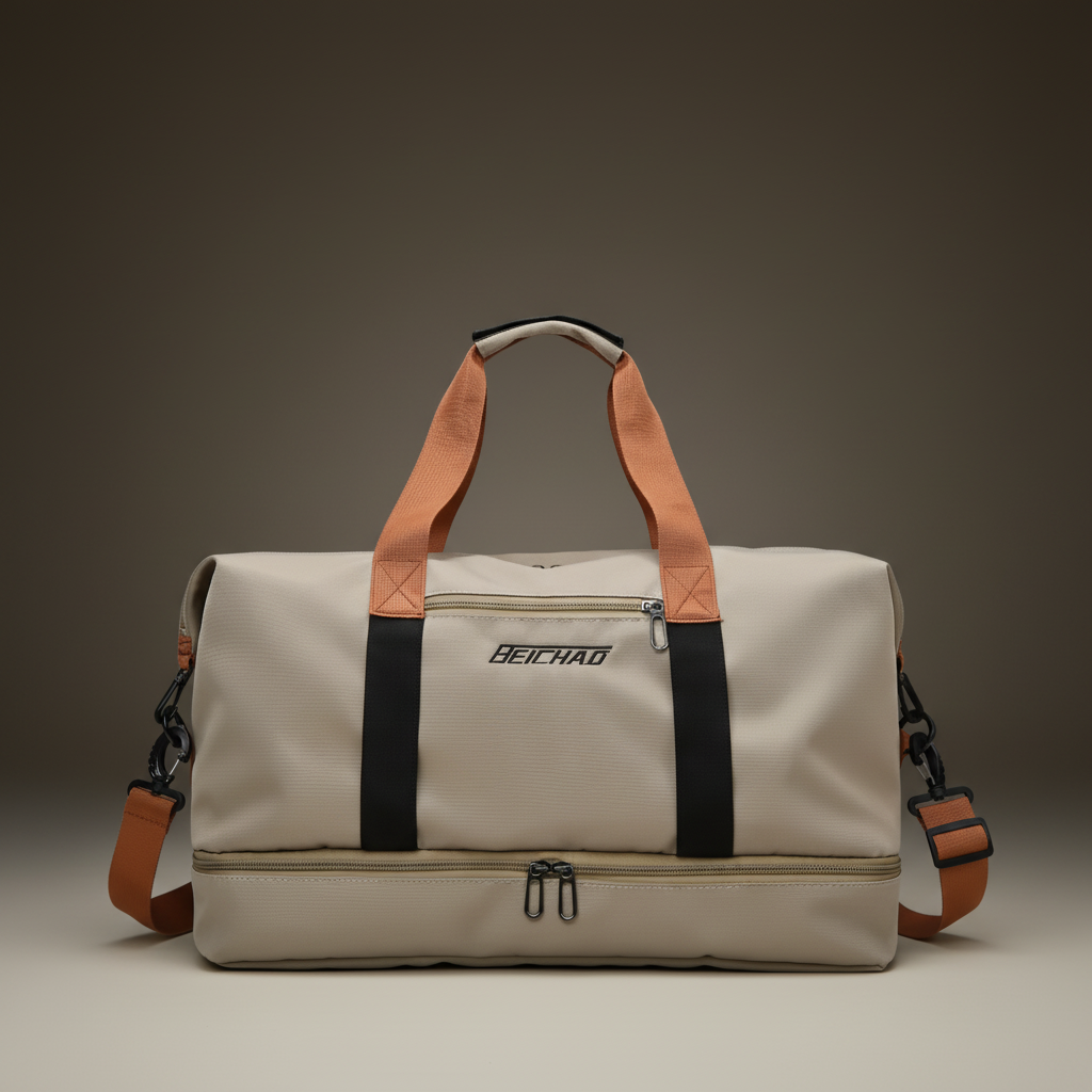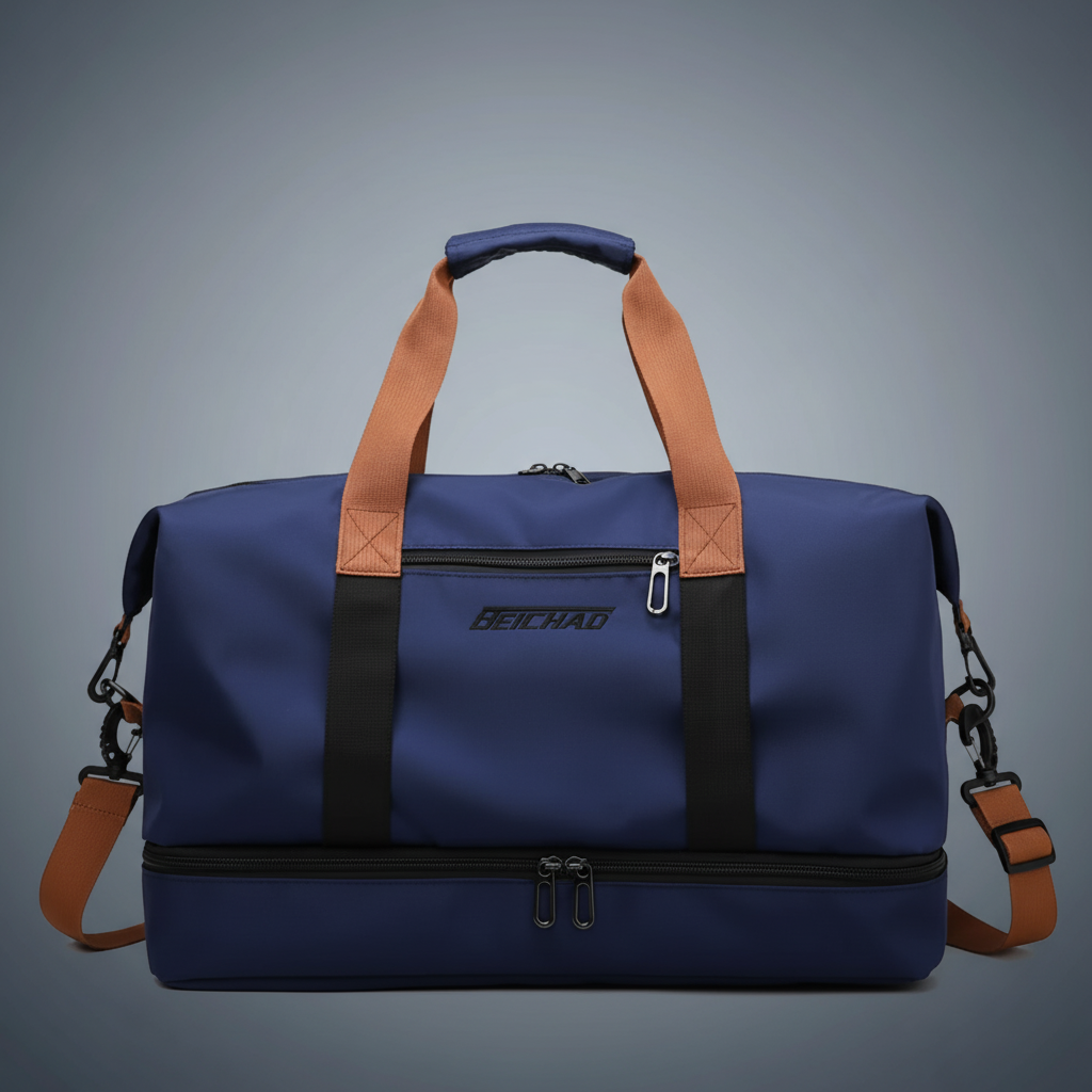 فصل الرطب عن الجاف: جيب داخلي خاص معزول تماماً (Dry Wet Separation) لوضع الملابس المبللة، الفوط، أو ملابس السباحة دون أن تتبلل باقي الأغراض.