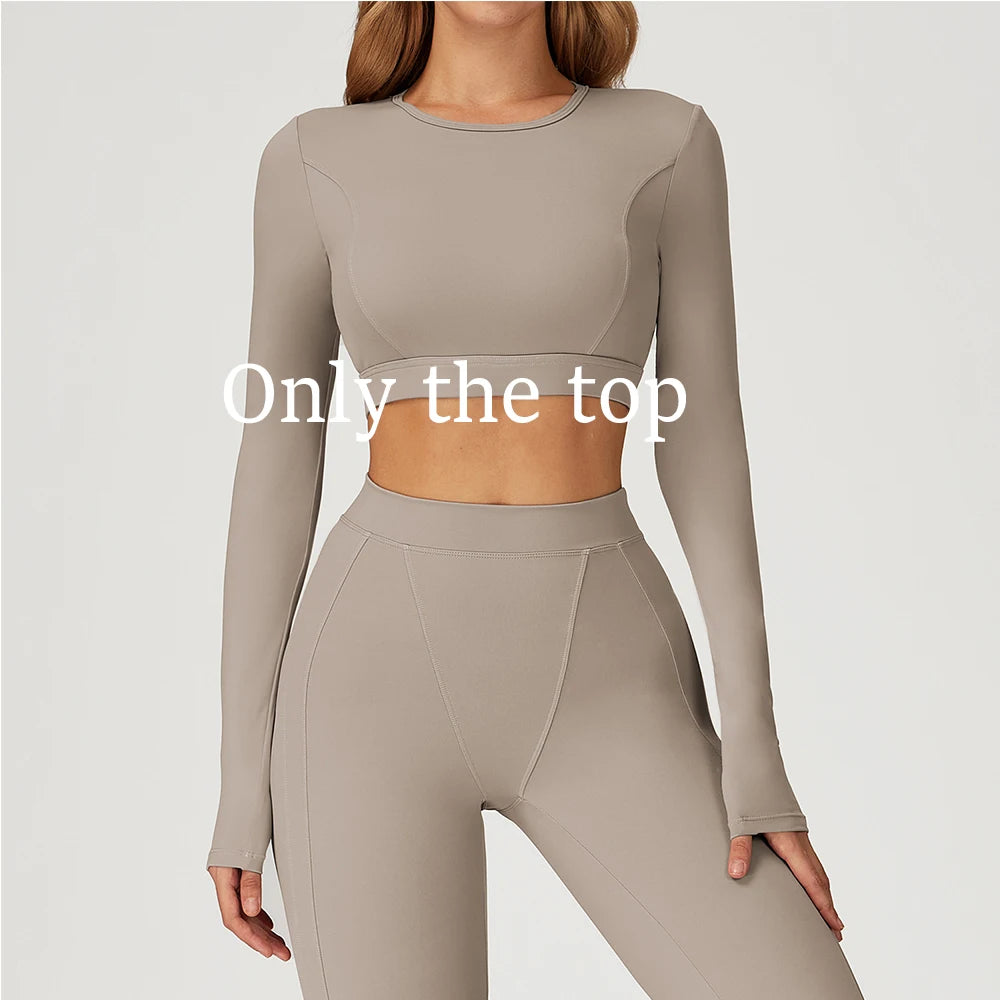 تيشيرت نسائي يوغا قصير بأكمام طويلة، يبرز البطن، سريع الجفاف، مثالي للجم والجري