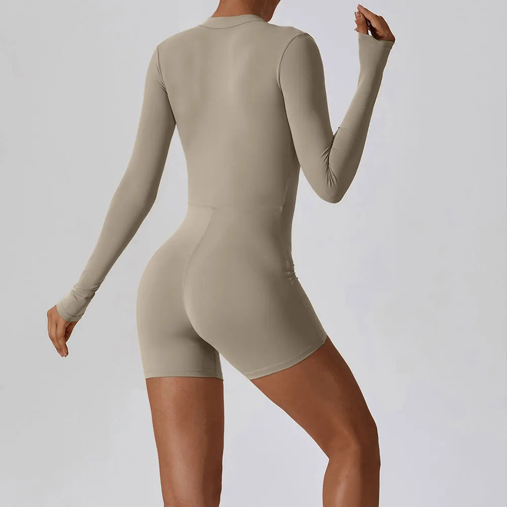 طقم يوغا وبوديسوت نسائي بسحاب وأكمام طويلة – ملابس جيم وتمارين، ملابس يوغا ورقص ولياقة، ستايل جذاب للرياضة والجيم
